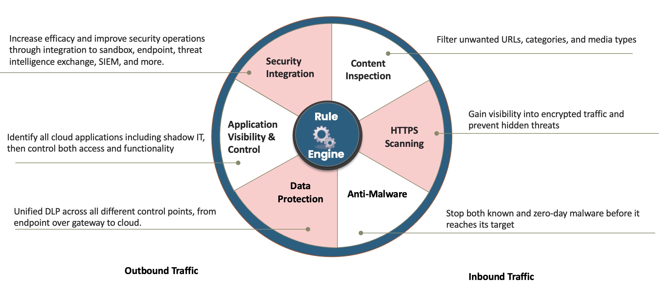 - Examining web traffic for malware such as virus, trojans and ransomware prior to the threat reaching the Endpoint. NOTE: The ability to inspect encrypted web traffic is paramount with, as most web traffic now uses TLS encryption.